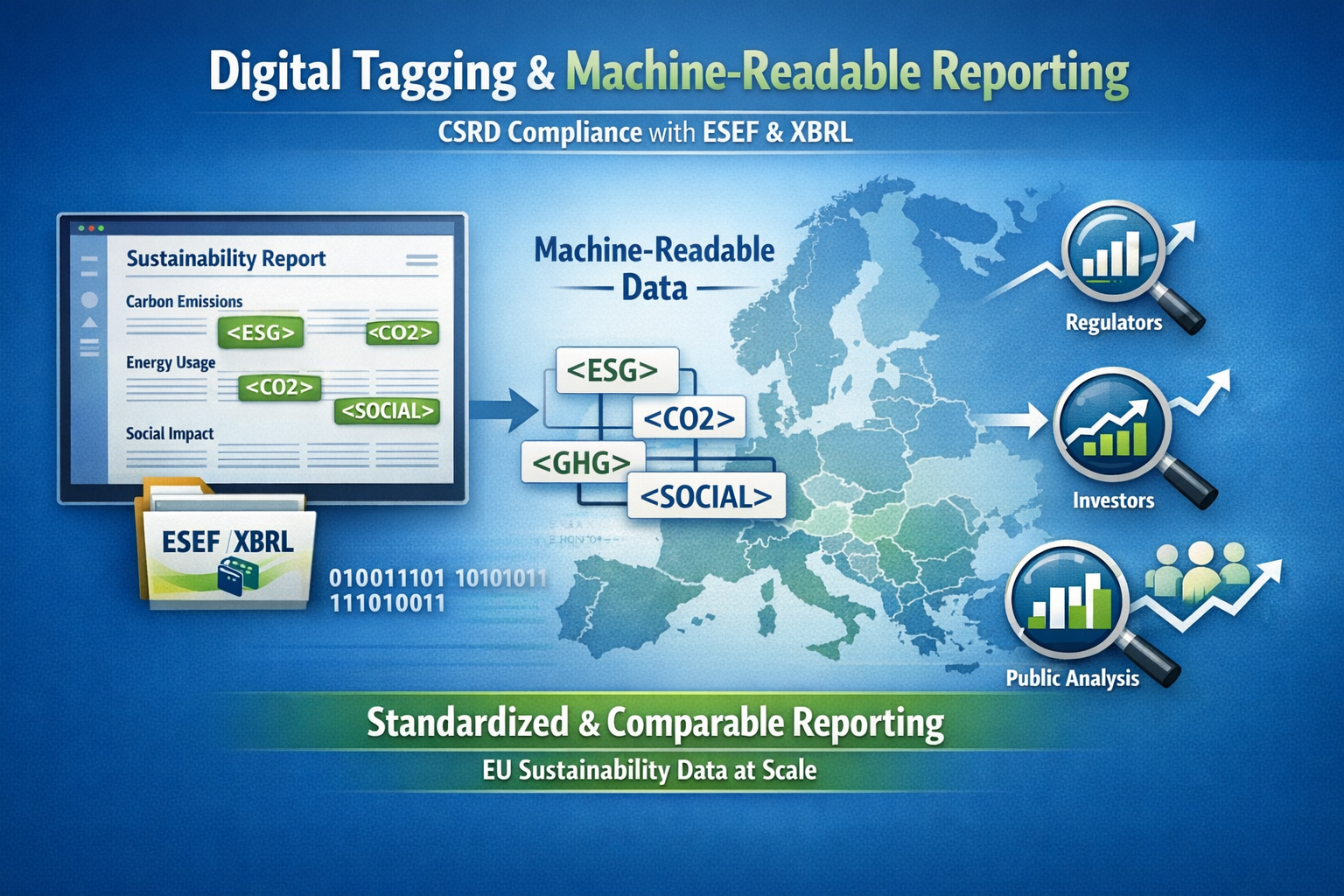 This is a technical requirement that many companies underestimate. CSRD disclosure rules specify that sustainability information must be machine-readable, enabling regulators, investors, and the public to extract, compare, and analyze data across companies and sectors automatically. This is a deliberate move toward standardized, comparable eu sustainability reporting at scale.